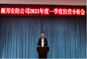 ? ? ? ? 4月6日,順邦安防公司召開2021年第一季度經(jīng)營分析會。會議主要總結(jié)了公司一季度經(jīng)營運(yùn)行情況,研究分析當(dāng)前形勢,簽訂《2021年度經(jīng)營目標(biāo)責(zé)任書》,安排部署下一步工作。公司黨委書記、執(zhí)行董事、總經(jīng)理唐清華主持會議。