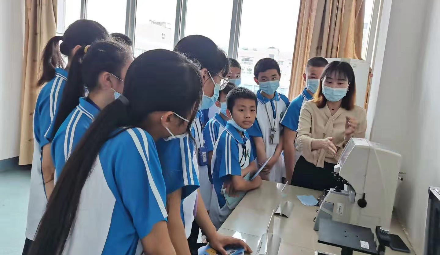 ? ? “健康計(jì)量走進(jìn)學(xué)校”活動(dòng)現(xiàn)場(chǎng),公司工作人員用專業(yè)的計(jì)量儀器設(shè)備為學(xué)生們檢測(cè)眼鏡質(zhì)量,講解愛眼護(hù)眼相關(guān)知識(shí)。